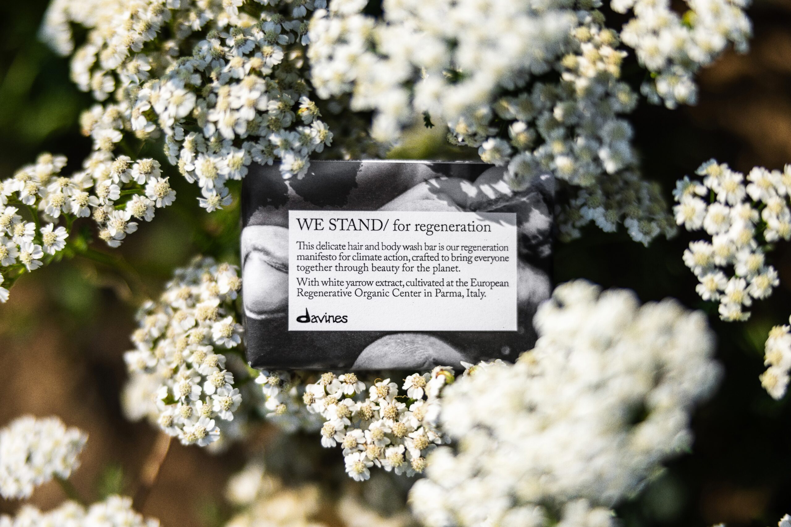 Bohaterem tegorocznej akcji jest delikatne mydło do mycia włosów i ciała w kostce We Stand/for regeneration Hair & Body Wash o właściwościach zmiękczających dla skóry i nawilżających dla włosów. Produkt ten zawiera ekstrakt z krwawnika białego, uprawianego w Europejskim Centrum Regeneratywno-Organicznym we włoskiej Parmie.